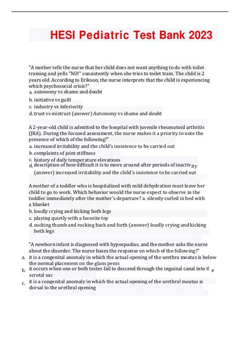 Download Hesi Pediatrics Test Bank 2014 Doc Internet Archive